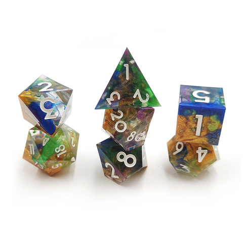 カスタマイズされた色付き多面体樹脂ダイス高品質7個アクリルオーロラゲームダイスセットDNDRPG用